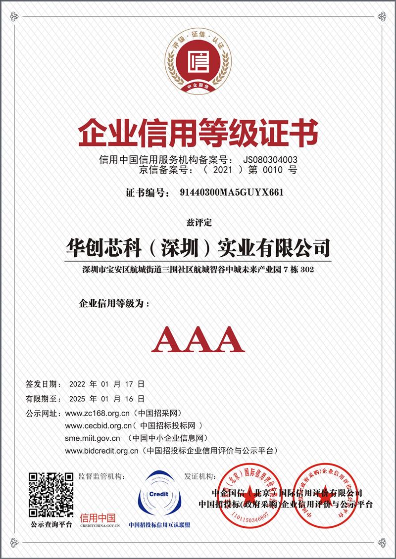 企业信用等级证书